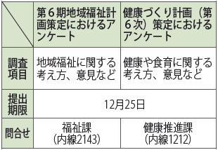保健福祉に関する計画を策定するため、12月中旬にアンケート調査を実施します。