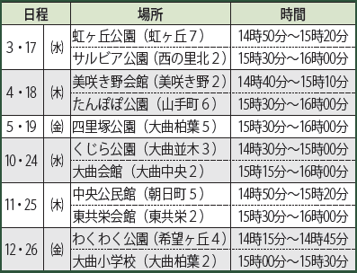 日時:第1・3水曜 (1)10時から (2)14時から(入場無料)