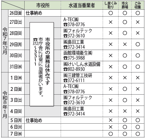 12月29日から1月3日まで、申し込みの受け付けと収集は休みです