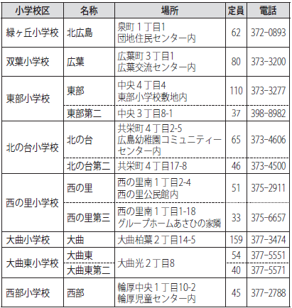 *複数の学童クラブがある小学校区は住所により区分していますが、申請状況によっては入所先を相談させてもらう場合があります。