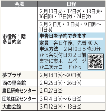 申込方法:1月5日9時~16日17時に市ホームページか二次元コードから申し込み