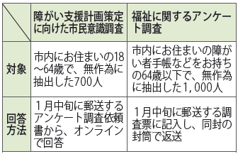障がい福祉サービスの提供や就労支援、相談支援などを充実させるため、アンケート調査を実施します。アンケートの結果は障がい支援計画策定などの参考にします。