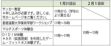 ほかにも、子ども向けのカプセルトイやThe City HALL★Starsのライブ、札幌国際大学スポーツ人間学部のワークショップなど楽しいイベントを予定しています。