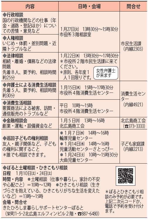 くらし 相談カレンダー 39/43 前の記事 次の記事 発行日 : 2026年01月01日 自治体名 : 北海道北広島市 広報紙名 : 広報北広島 2026年1月1日号 Tweet シェアする きたひろ大航海 1月のスケジュール(ES CON FIELD HOKKAIDO)