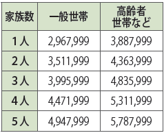 *家族数による年間総収入の限度額は次のとおりです(給与所得者が1人の場合)。