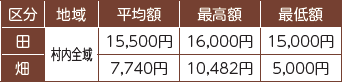 令和6年11月から令和7年10月までに締結された賃貸借における賃借料水準(10a当たり)は下記のとおりとなりますので、契約の参考にしてください。