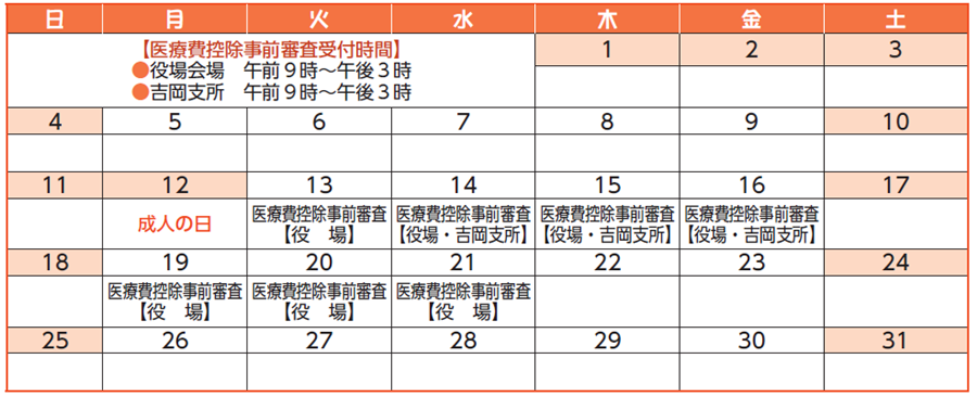今年も申告相談に先がけ、1月13日(火)から21日(水)までの間、医療費控除用明細書の記載内容のチェックなどを行います。