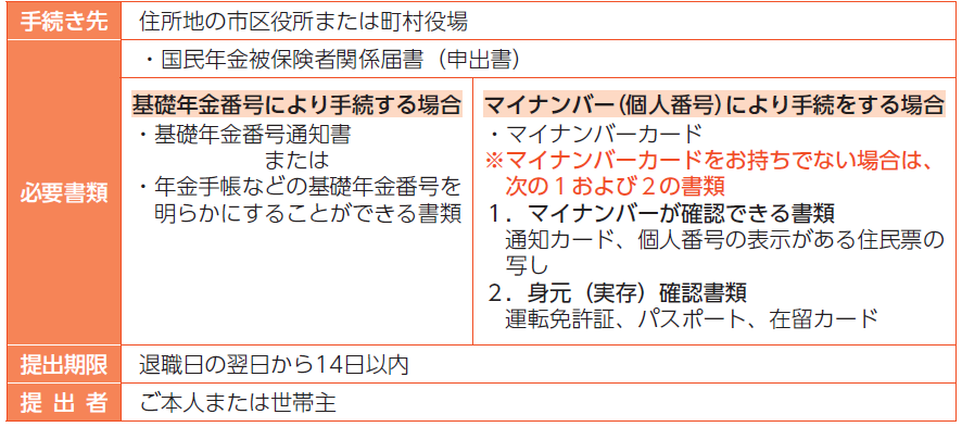 また、退職して配偶者が加入する健康保険の被扶養者となる場合には、国民年金第3号被保険者の手続きを行います。