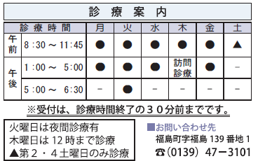 福島町胃がん検診も実施しておりますので、ご希望の方はご相談ください。