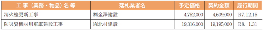 その他 工事等入札結果の公表 5/30 前の記事 次の記事 発行日 : 2025年10月01日 自治体名 : 北海道福島町 広報紙名 : 広報ふくしま 令和7年10月号 No.827 町発注の工事等入札結果の状況をお知らせします。詳しい資料は、役場総務課窓口で閲覧いただけます。 ☆入札結果(8月27日~9月10日) 単位:円 Tweet シェアする タウン情報 第26回 ふくしま健康フェスティバル