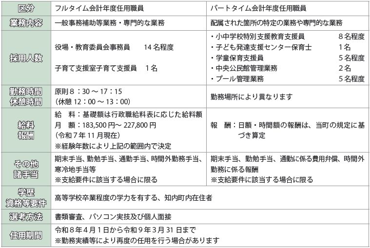 町では、令和8年度採用の会計年度任用職員(フルタイム及びパートタイム)を募集します。