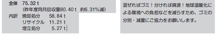 くらし 7月のゴミ回収量(一般ゴミ) 9/31 前の記事 次の記事 発行日 : 2025年09月01日 自治体名 : 北海道鹿部町 広報紙名 : 広報しかべ 2025年9月号 Tweet シェアする ごみの焼却は犯罪です! 鹿部町内不法投棄等監視パトロール実施中!!