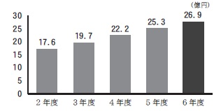 一般会計などが負担する元利償還金および準元利償還金の標準財政規模に対する比率(早期健全化基準25.0%)※その他の指標の「実質赤字比率」「連結実質赤字比率」「将来負担比率」、また、企業会計の「資金不足比率」はいずれも赤字や資金不足がありませんでしたので、数値が生じておりません。