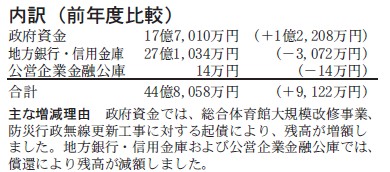 ※借入金残高の44億8,058万円のうち28億7,831万円が交付税参入されます。(町負担額は、16億228万円です。)
