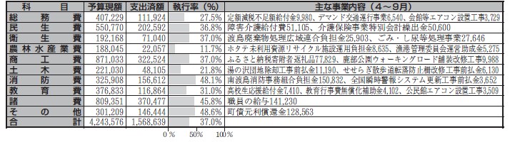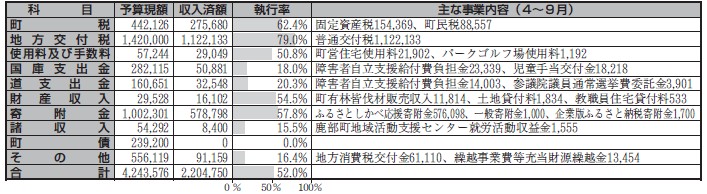 町では、町財政についてご理解をいただくため、年2回「財政状況の公表」を行っています。今回は、令和7年度の上半期(令和7年4月1日~令和7年9月30日)に実施した主な事業と令和7年9月30日現在における歳入歳出予算の執行状況などをお知らせします。