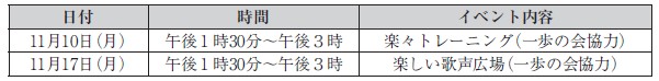 楽々トレーニングに是非ご参加ください。トレーニング後の茶話会も楽しいですよ。