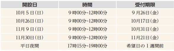 ※予約制(先着順)のため、予約がない日の窓口は開設いたしません。