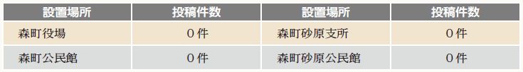 町では、町民の皆さんから町政に関す意見等をお聞きし協働のまちづくりを推進するため、役場などに意見箱を設置しています。令和7年8月4日~令和7年9月2日までの期間中には新たな投稿はありませんでしたが、これまでに寄せられたご意見のうち、公表要件を満たすものについて以下のとおり回答をお知らせします。
