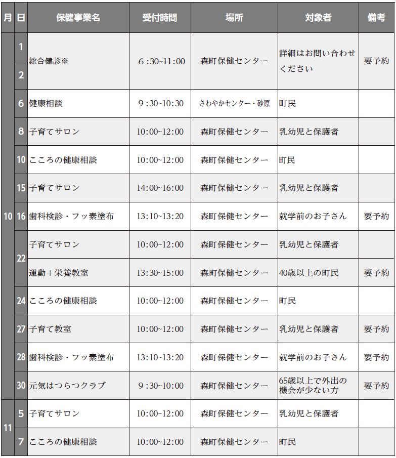 ※総合健診…特定健診・胃がん・肺がん・大腸がん・肝炎ウイルス・エキノコックス症検診