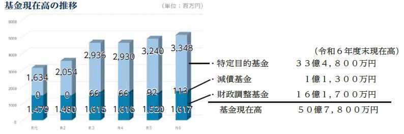 将来の多額の支出に備えて蓄えておく町の貯金(基金)は、ふるさと応援寄付金の積立等により令和6年度末の残高は以下のとおりとなります。(令和6年度末現在高)
