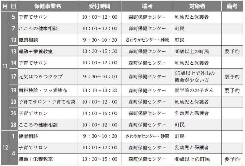■保健事業日程表(11・12月)忘れずに確認しましょう!