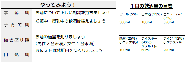 自身の飲酒状況を振り返り、健康に配慮した「楽しいお酒」を心がけましょう。