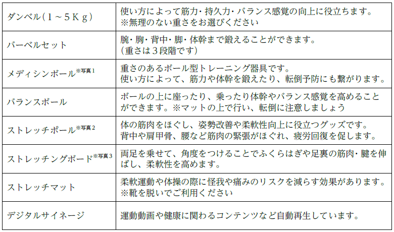 今月号ではその他のトレーニングコーナーで活用できる運動グッズを紹介します。