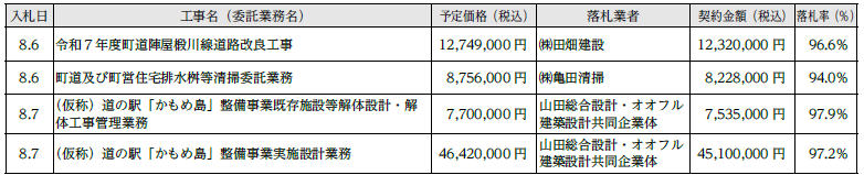 くらし 入札結果のお知らせ(8月15日まで) 36/44 前の記事 次の記事 発行日 : 2025年09月01日 自治体名 : 北海道江差町 広報紙名 : 広報えさし 令和7年9月号 ※予定価格の事後公表は、予定価格が250万円を超える工事と、設計・測量などの委託業務で、予定価格が100万円を超えるもののみ公表しています Tweet シェアする 町長の主な動静(7月16日~8月15日まで) 夏休みの思い出に! 夏休みモノづくり広場開催