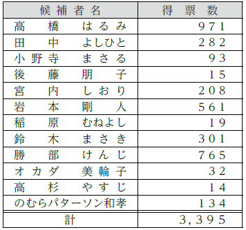 くらし 第27回参議院議員通常選挙の結果 39/44 前の記事 次の記事 発行日 : 2025年09月01日 自治体名 : 北海道江差町 広報紙名 : 広報えさし 令和7年9月号 ■投票結果 ※有権者数には在外選挙人を含む ■開票結果(選挙区) ※届出順、敬称略 ■開票結果(比例代表) Tweet シェアする 友好都市 珠洲市 サツドラ包括連携協定事業~江差EZOCA 地域還元金贈呈