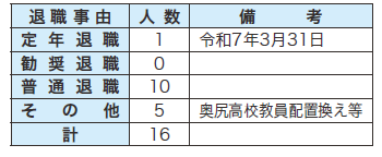 (2)職員の退職の状況(令和6年4月2日~令和7年4月1日)