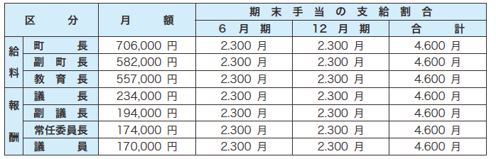 なお、町職員の給与については、地方公務員法に基づき国家公務員に準じた制度となっており、町議会の議決を経ながら条例によって定められています。