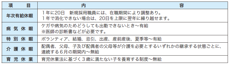 (2)休暇等制度の概要