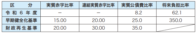 以上のように令和6年度は「1健全化判断比率」において、早期健全化基準をすべて下回りました。