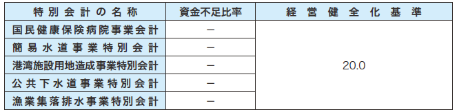 また、各公営企業会計の「2資金不足比率」については、資金不足が生じた会計がないため該当ありませんでした。