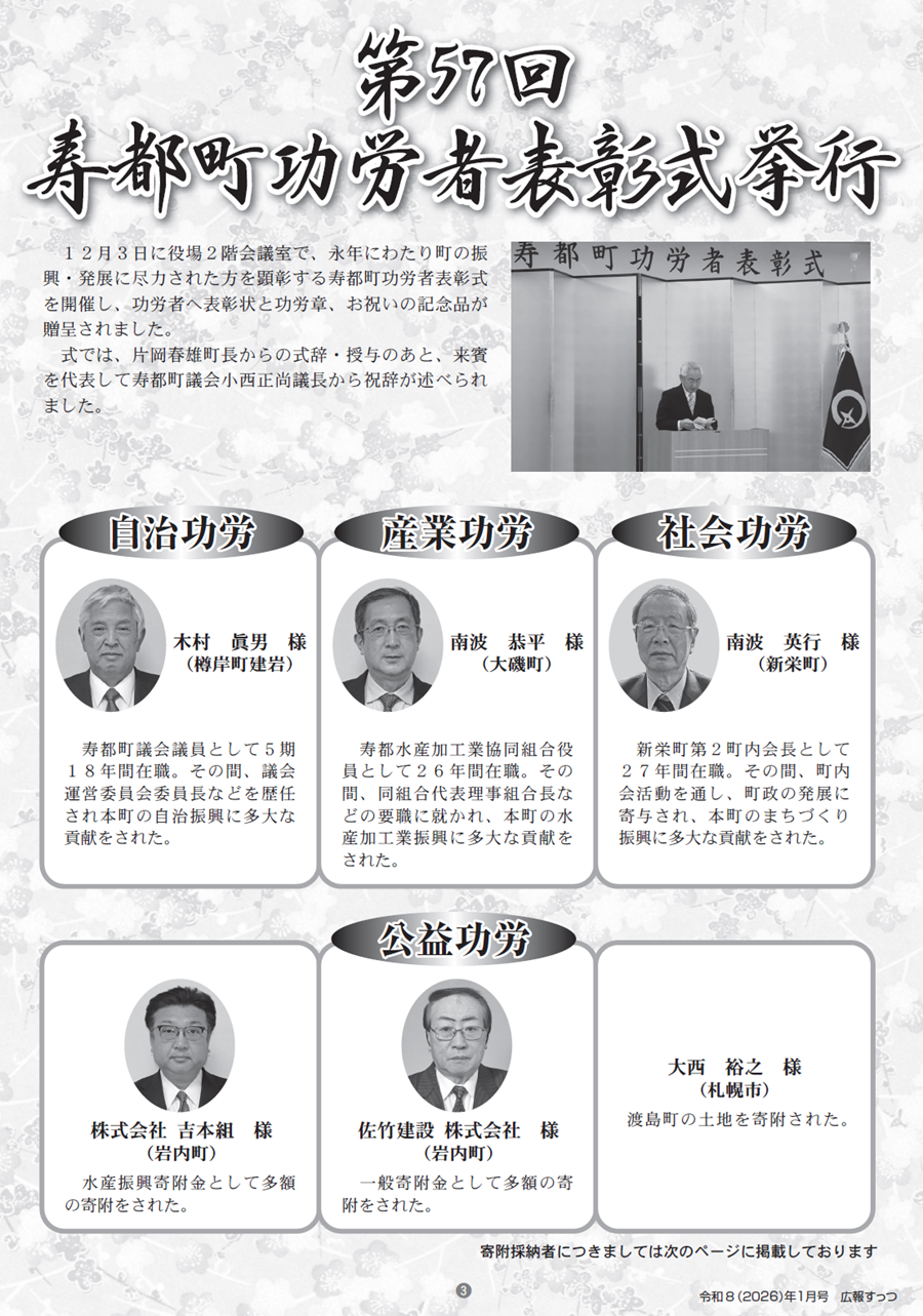くらし 広報すっつ 2026年1月号 P.3 3/10 前の記事 次の記事 発行日 : 2026年01月07日 自治体名 : 北海道寿都町 広報紙名 : 広報すっつ 2026年1月号 Tweet シェアする 広報すっつ 2026年1月号 P.2 広報すっつ 2026年1月号 P.4