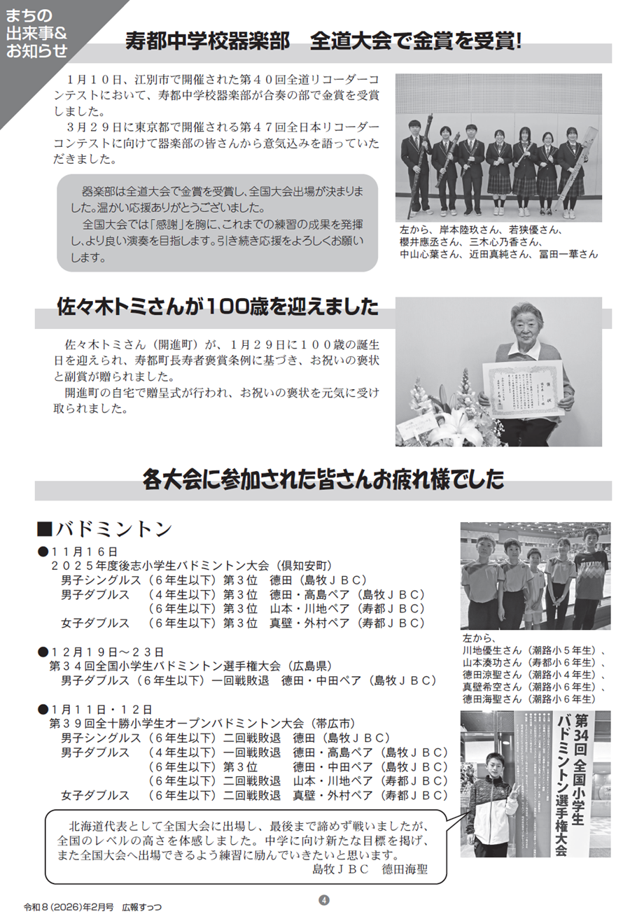 くらし 広報すっつ 2026年2月号 P.4 4/8 前の記事 次の記事 発行日 : 2026年02月04日 自治体名 : 北海道寿都町 広報紙名 : 広報すっつ 2026年2月号 Tweet シェアする 広報すっつ 2026年2月号 P.3 広報すっつ 2026年2月号 P.5