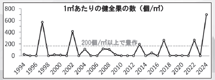 ▽歌才ブナ林の結実量の変化(1994年~2024年)