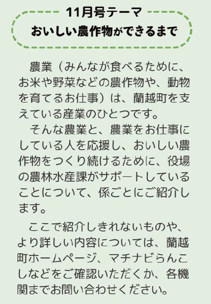 くらし 《今月の特集 1》蘭越の農業サポート~おいしい農作物をつくり続けるために~ 1/27 次の記事 発行日 : 2025年11月15日 自治体名 : 北海道蘭越町 広報紙名 : 広報らんこし 2025年11月号 Tweet シェアする まちの話題