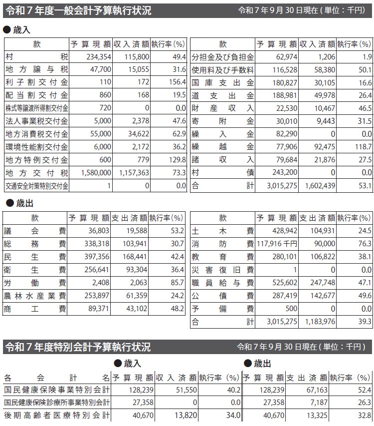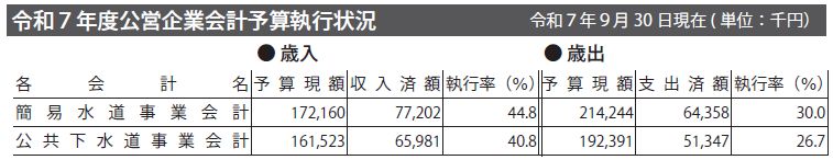 今回は、令和7年4月1日から令和7年9月30日までの一般会計および特別会計、公営企業会計の歳入・歳出予算(前年度からの繰越事業費を含む)の執行状況、財産・地方債・一時借入金の現在高について公表します。