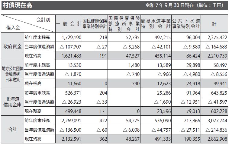 ■一時借入金現在高令和7年9月30日現在(単位/千円)
