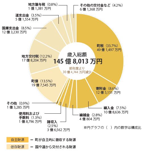 歳入総額は前年度と比べ約17.3%、30億4,744万円の減少となりました。