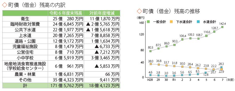 また、歳出の公債費によりこれまでの町債の元金償還を進めています。
