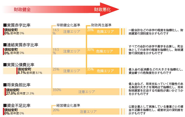 令和6年度決算を基に「地方公共団体の財政の健全化に関する法律」の規定による財政の健全化判断比率を算定した結果、当町の財政状況はいずれの指標においても健全であるという結果が出ました。