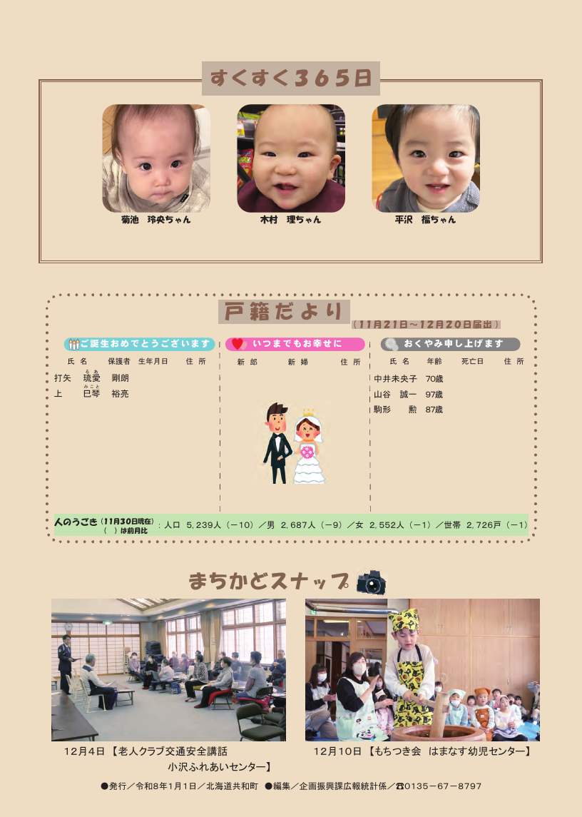 その他 広報きょうわ 2026年1月号 P.20 20/20 前の記事 発行日 : 2026年01月01日 自治体名 : 北海道共和町 広報紙名 : 広報きょうわ 2026年1月号(No.845) Tweet シェアする 広報きょうわ 2026年1月号 P.19