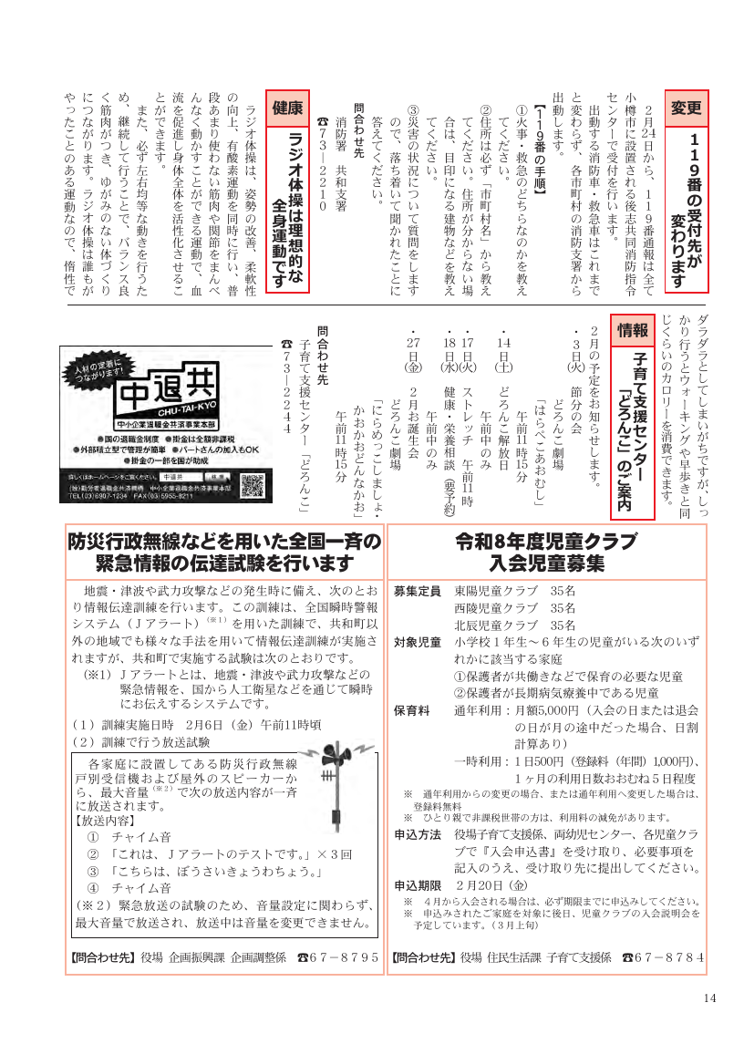 くらし 広報きょうわ 2026年2月号 P.14 14/16 前の記事 次の記事 発行日 : 2026年02月01日 自治体名 : 北海道共和町 広報紙名 : 広報きょうわ 2026年2月号(No.846) Tweet シェアする 広報きょうわ 2026年2月号 P.13 広報きょうわ 2026年2月号 P.15