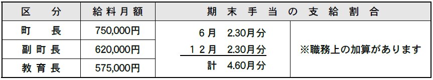 期末・勤勉手当:民間企業のボーナスに当たるもの年間4.6月分を支給