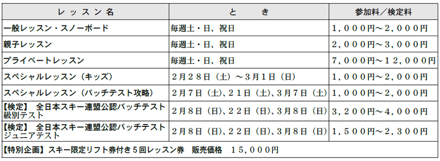 ※荒天日、中止の場合があります。また、別途リフト代が必要です。