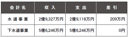 水道事業は、令和4年度からの水道料金改定により赤字が解消され、209万円の黒字となりました。
