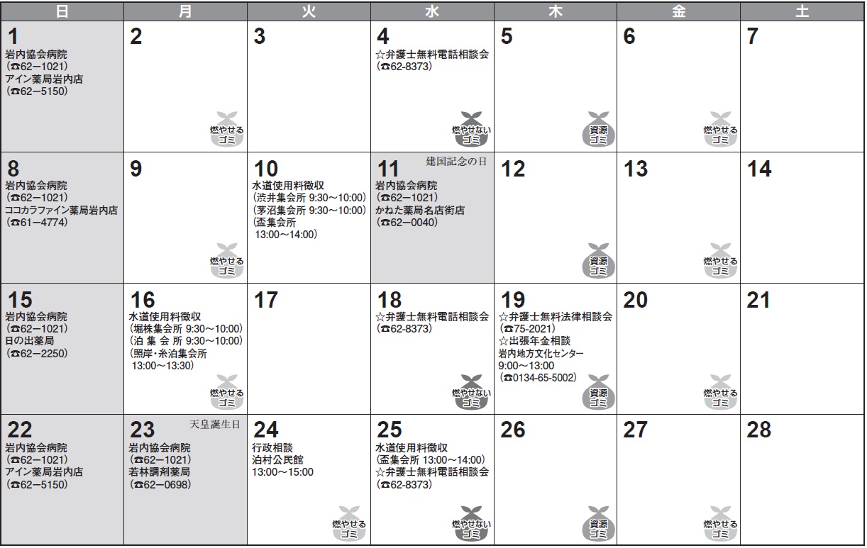 くらし 2月 泊村カレンダー 15/16 前の記事 次の記事 発行日 : 2026年01月31日 自治体名 : 北海道泊村 広報紙名 : 広報とまり 令和8年2月号 ☆がついているのは事前予約制です Tweet シェアする 人のうごき その他のお知らせ(広報とまり 令和8年2月号)