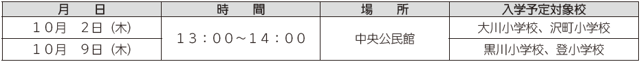 教育委員会では、来春小学校に入学する児童の健康診断を以下の日程により実施します。
